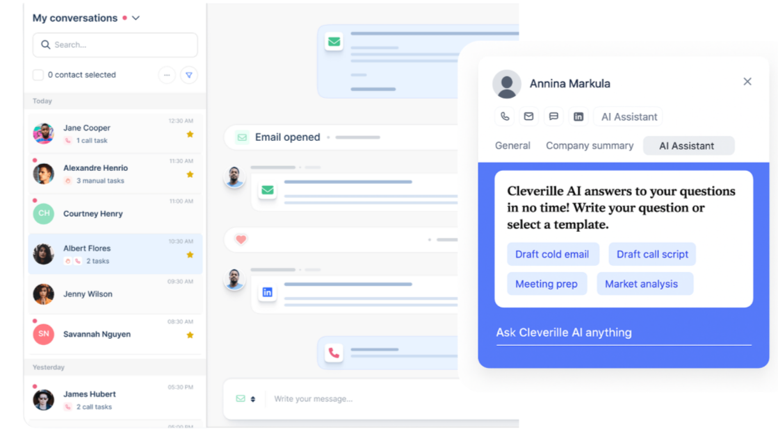 Mix phone with other channels for 3x success. Connect with leads in inboxes, follow up with warm calls, and close deals faster – all from Cleverille.